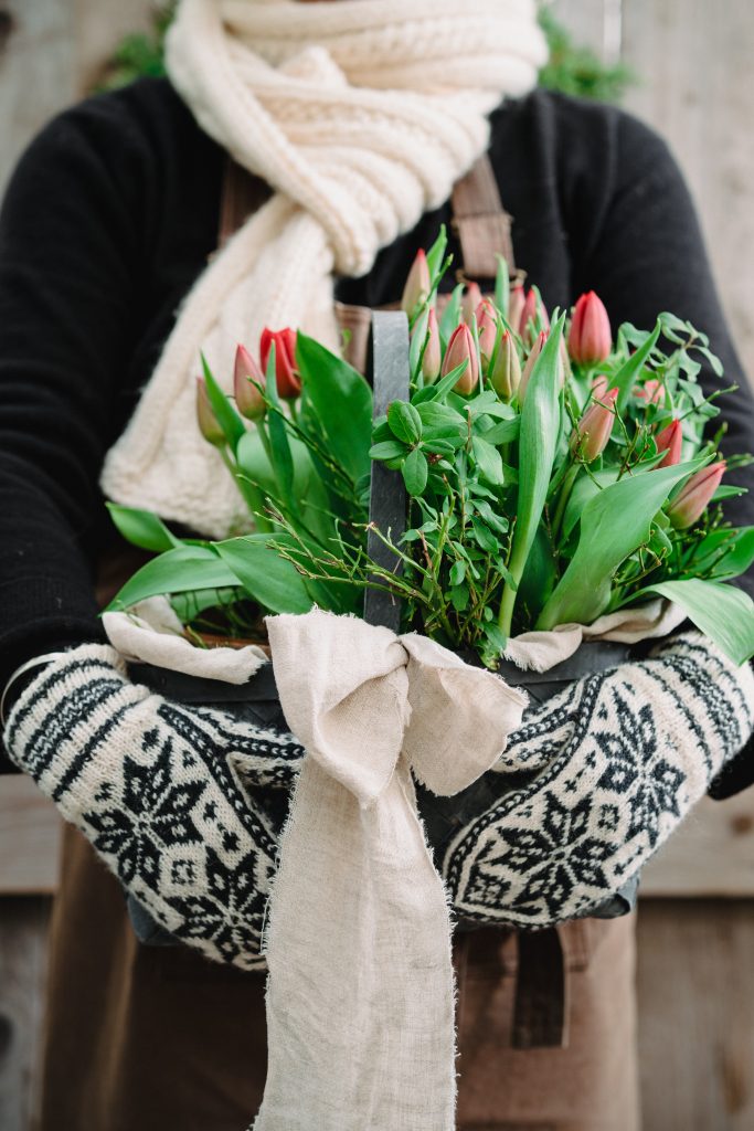 Det er alltid en glede å sette frem eller gi bort en bukett med tulipaner til jul. Den enkle, organiske formen og de klare fargene gjør at tulipaner passer like godt inn i et moderne hjem som i et mer tradisjonelt interiør. Blomstene blir raskt et naturlig midtpunktet i rommet, og blir ekstra vakre i kombinasjon med litt vintergrønt fra hagen. Utvalget er stort – fra enkle og doble, til frynsete og glatte varianter – her velger du helt etter egen smak og stil.